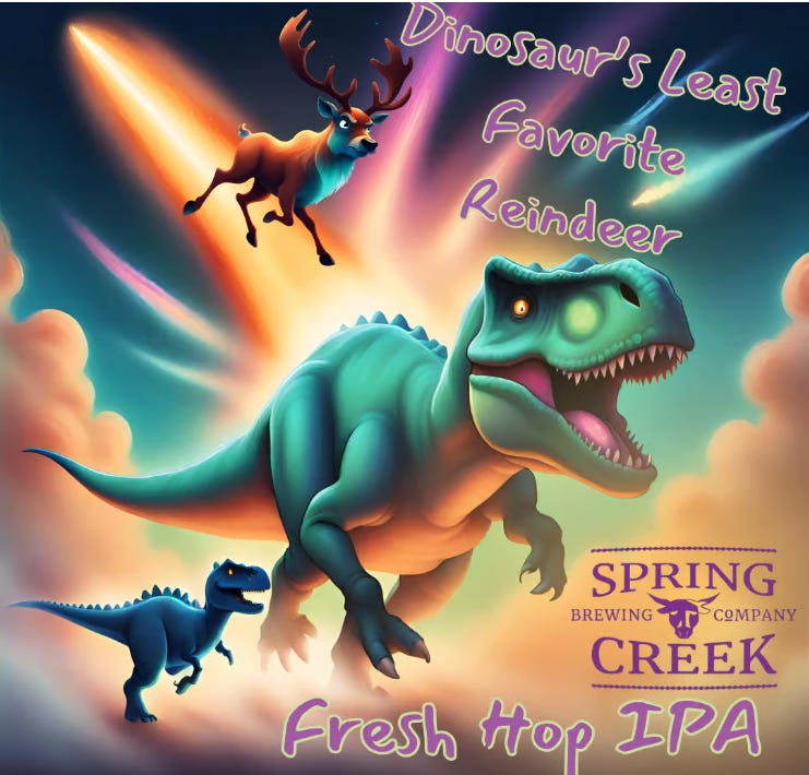 Spring Creek Dinosaur’s Least Favorite Reindeer Fresh Hop IPA